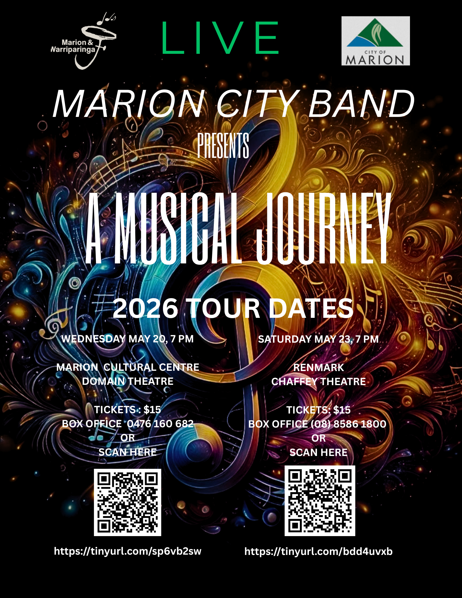 We have two concerts in this series – at Marion Cultural Centre Theatre, and at Chaffey Theatre, Renmark.
